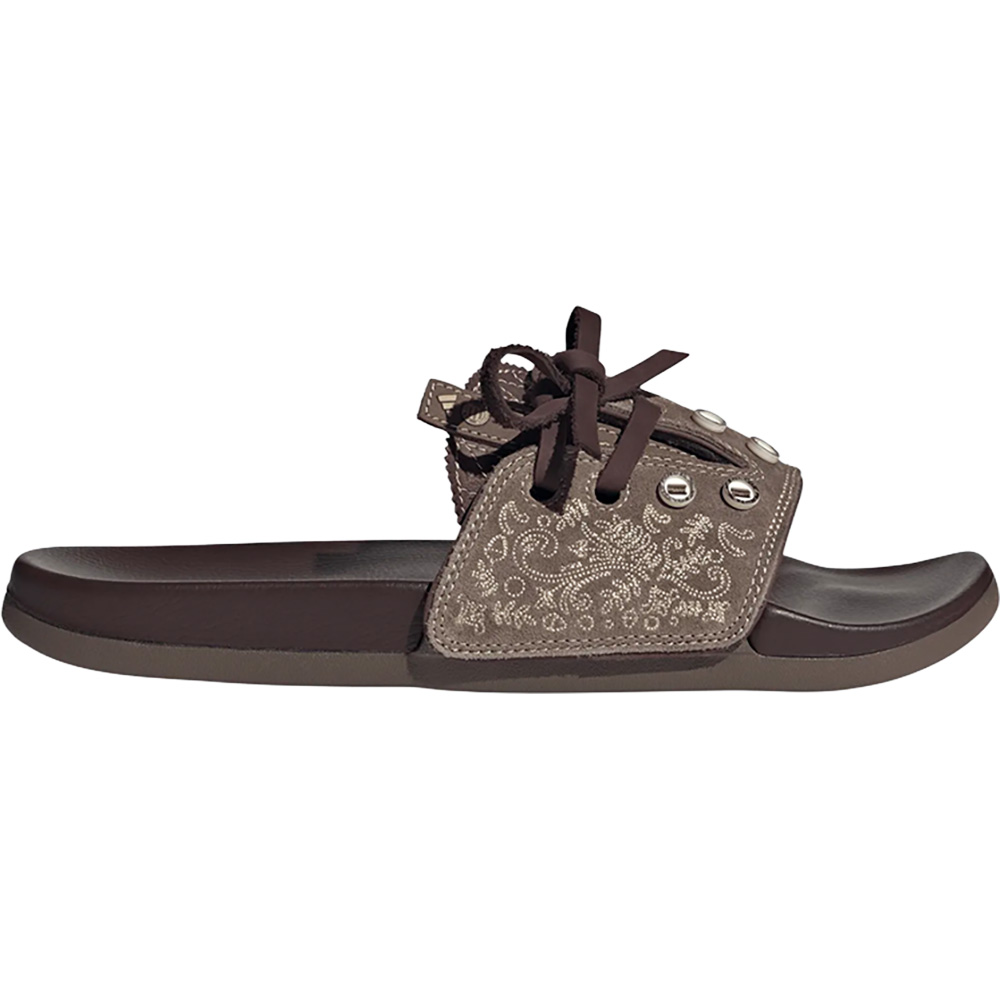 Der adidas Adilette Comfort Slide in Zusammenarbeit mit Bayern München, Modell JS4597, ist eine stilvolle Neuinterpretation des klassischen Adilette-Designs und wurde speziell für die Wiesn-Saison 2025 entworfen. Der Schuh verbindet sportlichen Komfort mit traditionellem bayerischen Flair und richtet sich an jeden Fan des FC Bayern München. Das Obermaterial besteht aus hochwertigem Leder in den Farben Earstr, Warsan und Shabrn, wodurch der Schuh elegant und zugleich rustikal wirkt. Ein dekorativer Riegel auf dem Riemen, verziert mit Schnürsenkeln und Knöpfen, ist inspiriert von den traditionellen Lederhosen, die beim Oktoberfest getragen werden, und das ikonische Bayern München-Logo unterstreicht die Verbundenheit zum Verein. Die Adilette Comfort Slide überzeugt nicht nur optisch, sondern auch durch hohen Tragekomfort: das konturierte Fußbett sorgt für eine angenehme Passform, während die synthetische Außensohle für Rutschfestigkeit und Langlebigkeit sorgt. Ob beim Besuch des Oktoberfests, beim Entspannen zu Hause oder beim Anfeuern des FC Bayern, dieser Schuh vereint Tradition mit modernem Design und ist ein echtes Highlight für jeden Fan.