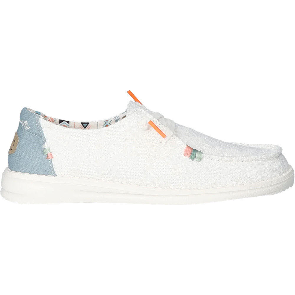 Der Wendy Boho ist ein ultraleichter Low-Top Moc für Frauen. Diese Version zeichnet sich durch ein gehäkeltes Obermaterial aus. Zusammen mit den charakteristischen HEYDUDE-Nähten und anderen Details garantiert dies den ultimativen Sommer- und Festival-Style. Er ist ein einfacher Slipper für Frauen, die einen natürlichen Komfort suchen. Superflexibel, aber mit dem Komfort, den Sie von einem Schuh erwarten. Atmungsaktive und leichte Materialien halten ihn luftig. Einfach zum Anziehen und leicht im Gepäck mitzunehmen.