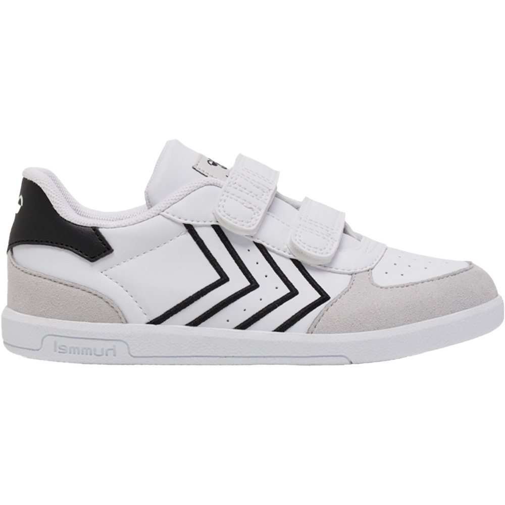 Der VICTORY ist ein klassischer Court-Schuh mit Obermaterial aus Kunstleder, hochwertigen Stickereien und einer strapazierfähigen Gummilaufsohle. Dank des zuschneidbaren Klettverschlusses ist er zudem verstellbar. Das Design besticht durch hummel®-Winkel in elegantem Kontrasteffekt sowie das Bumblebee®-Logo an der Ferse.