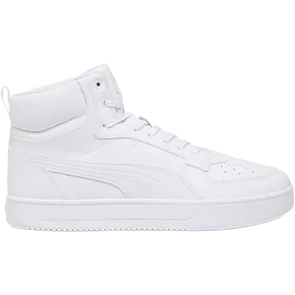 Der PUMA Caven 2.0 Mid Sneaker ist ein sportlich-stylischer Mid-Top-Sneaker, der klassischen Basketball-Style der 80er-Jahre mit modernem Komfort vereint. Die halbhohe Silhouette verleiht dem Schuh einen markanten Look, der sich perfekt zu Casual-Outfits im Alltag oder Freizeit-Style kombinieren lässt. Das Obermaterial besteht überwiegend aus synthetischen Materialien mit einem Anteil recycelter Komponenten, die Langlebigkeit, leichte Pflege und Nachhaltigkeit verbinden. Eine weiche Einlegesohle sorgt für angenehme Dämpfung, während die robuste Gummi-Laufsohle sicheren Grip auf verschiedenen Untergründen bietet. PUMA-Branding-Details und der Formstrip an der Seite unterstreichen den klassischen Sport-Charakter dieses Sneakers.