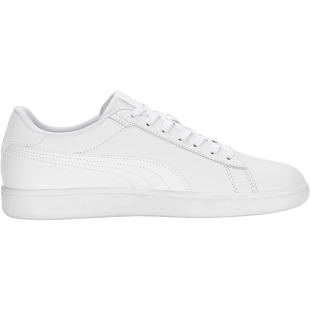 Der PUMA Smash 3.0 L sorgt dafür, dass klassischer Tennis-Charme und moderner Komfort perfekt miteinander harmonieren. Angelehnt an ikonische Court-Sneaker, zeigt er sich in klaren, langen Linien und setzt Akzente mit einem neu gestalteten Ösenleisten-Design sowie einem gepolsterten Schuhkragen, der die Knöchel angenehm unterstützt. Die Innensohle ist ebenfalls mit Polsterung ausgestattet und sorgt so für noch mehr Laufkomfort – besonders hinter der Ferse spürt man das weiche Nachgeben spürbar.