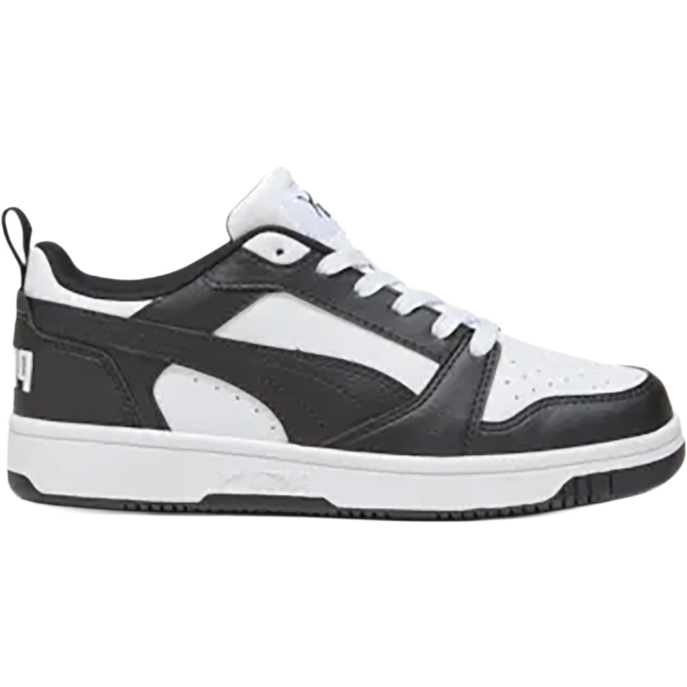 Der PUMA Rebound V6 Low Junior Sneaker ist ein sportlicher und vielseitiger Low-Top-Sneaker, der klassisches Retro-Design mit einem modernen Streetstyle verbindet – ideal für Alltag, Freizeit und Schule. Inspiriert von ikonischen Basketball-Schuhen, besticht dieser Sneaker durch seine perforierten Details in der Zehenpartie und ein monochromes, leicht kombinierbares Farbkonzept, das zu vielen Looks passt. Das Obermaterial aus robusten, pflegeleichten synthetischen Materialien und Textil sorgt für gute Atmungsaktivität und Langlebigkeit, während das gepolsterte Fußbett und die flexible Gummi-Laufsohle angenehmen Komfort und sicheren Grip bei jedem Schritt bieten. Mit dem klassischen PUMA Formstrip an der Seite und dem markanten No.?1-Logo auf der Zunge ist dieser Sneaker ein stylischer Begleiter für aktive Kids jeden Tag.