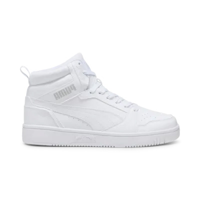 Der PUMA Rebound V6 Mid Retro Sneaker ist ein sportlich-inspiriert gestalteter Sneaker, der klassischen Basketball-Look mit modernem Alltagskomfort vereint. Sein mittelhoher Schnitt verleiht stabilen Halt im Knöchelbereich und macht ihn zur idealen Wahl für Freizeit, Streetstyle und Casual-Looks. Das Obermaterial besteht aus robustem synthetischen Material, das zu einem großen Teil recycelte Komponenten enthalten kann und pflegeleicht ist, während das textile Innenfutter für angenehmes Tragegefühl sorgt. Die komfortable SOFTFOAM+-Innensohle sorgt für weiche Dämpfung bei jedem Schritt und erhöht den Tragekomfort, und die flexible Gummi-Laufsohle bietet sicheren Grip auf verschiedenen Untergründen. Klassisches PUMA-Branding rundet den sportlichen Stil ab und macht diesen Sneaker zu einem vielseitigen Begleiter im Alltag.