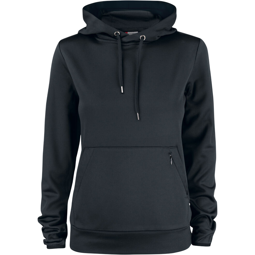 Funktioneller und sportlicher Hoody. Kommt mit einer Kängurutasche und zusätzlicher versteckter Tasche mit Reißverschluss. Kapuze hat Mesh-Futter und einen Tunnelzug. Elastisches Bündchen an den Ärmeln. Manschette in Shell-Stoff an der Unterseite. Waschbar bis 40°C