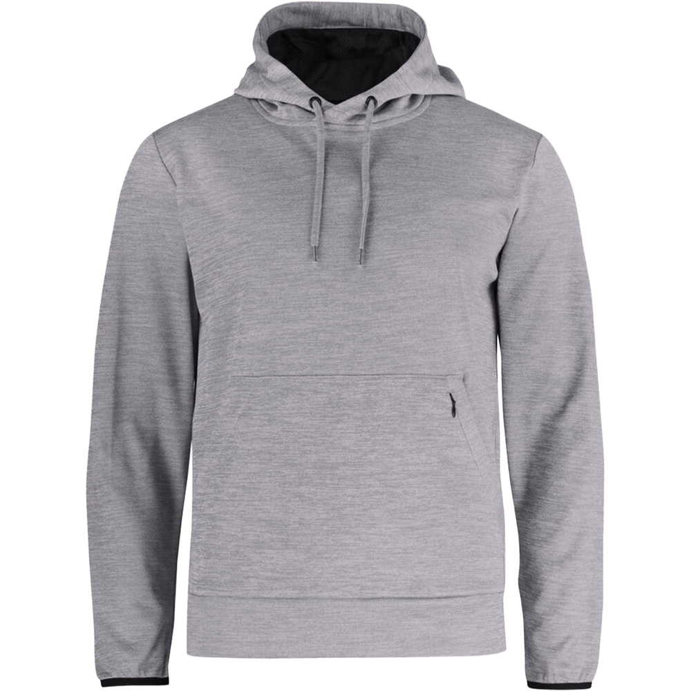 Funktioneller und sportlicher Hoody. Kommt mit einer Kängurutasche und zusätzlicher versteckter Tasche mit Reißverschluss. Kapuze hat Mesh-Futter und einen Tunnelzug. Elastisches Bündchen an den Ärmeln. Manschette in Shell-Stoff an der Unterseite. Waschbar bis 40°C.
