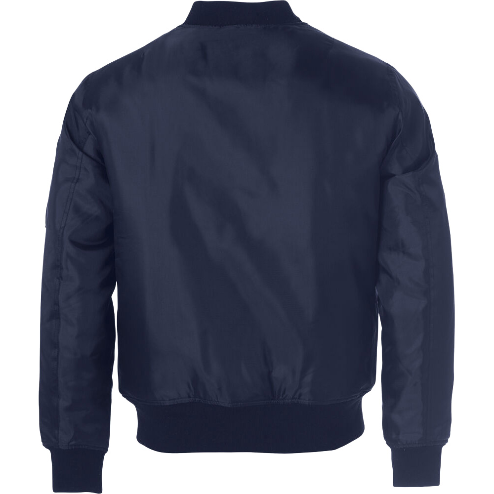 Typisch für den Bomber-Look sind die gerippten Abschlüsse an Kragen, Ärmeln und Saum sowie der durchgehende Frontreißverschluss. Zwei seitliche Taschen mit Druckknopf, eine Reißverschlusstasche am Ärmel und eine Innentasche bieten ausreichend Stauraum für persönliche Gegenstände.