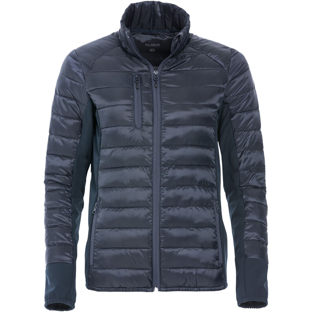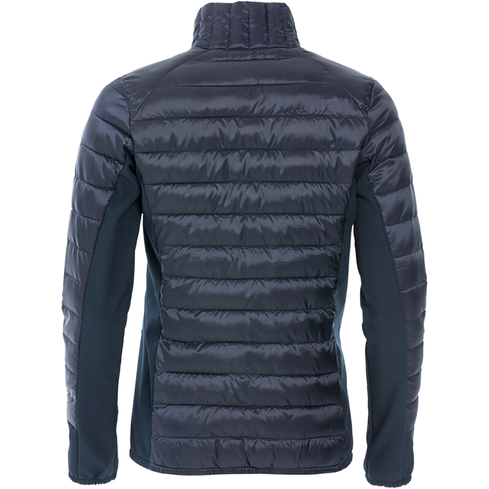 Eine moderne Jacke mit daunenähnlicher Wattierung und Softshell-Panels an den Seiten. 3 Außentaschen mit Reißverschluss und 2 Innentaschen. Kopfhörer-Schlaufe im Nackenband. Waschbar bis 40°C.