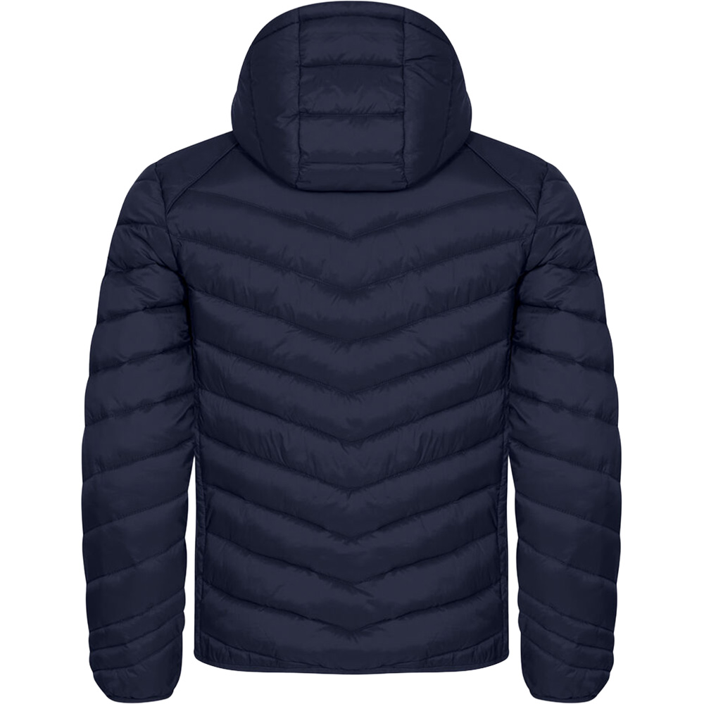 Eine warme und dennoch leichte Jacke mit daunenähnlicher Wattierung. Hergestellt aus 100% recyceltem Material. Abnehmbare Kapuze, 3 Außentaschen mit Reißverschlüssen und 2 Innentaschen. Elastisches Band am Bund und an den Ärmeln. Mit farbigem Aufhänger, Kopfhörerhalterung und Reißverschlüssen.