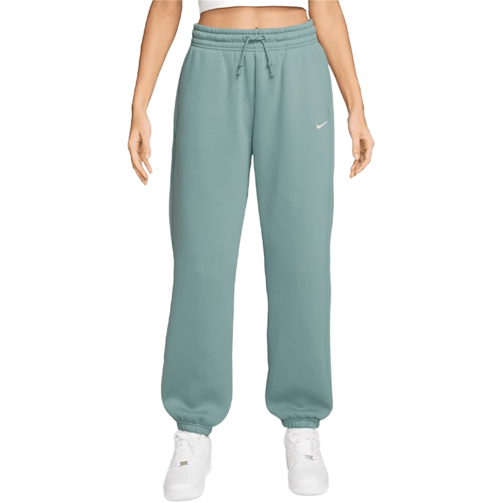 Die Nike Sportswear Phoenix Fleece Damen Jogginghose in der Farbe Seaweed/Sail vereint modernen Komfort mit einem stilvollen Design. Gefertigt aus 80?% Baumwolle und 20?% Polyester bietet sie ein angenehmes Tragegefühl. Der mittelhohe Bund sorgt für eine bequeme Passform, während die elastischen Bündchen am Beinabschluss die Silhouette betonen. Die seitlichen Taschen bieten Platz für kleine Essentials oder die Hände an kühlen Tagen. Das minimalistische Design wird durch das gestickte Nike-Logo auf dem linken Oberschenkel ergänzt, das der Hose einen sportlichen Akzent verleiht. Ob beim Entspannen zu Hause, beim Treffen mit Freunden oder beim gemütlichen Spaziergang – diese Jogginghose ist ein vielseitiger Begleiter für jede Gelegenheit.