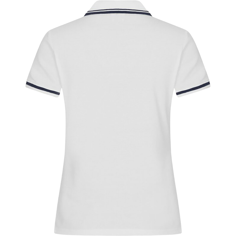 Der feminine Schnitt und die kontrastfarbenen Akzente am Kragen und an den Ärmelabschlüssen verleihen dem Polo eine elegante Note. Die kurzen Ärmel und die seitlichen Schlitze sorgen für Bewegungsfreiheit und einen modernen Look. Vier tonale Knöpfe und ein verstärktes Nackenband unterstreichen die hochwertige Verarbeitung.