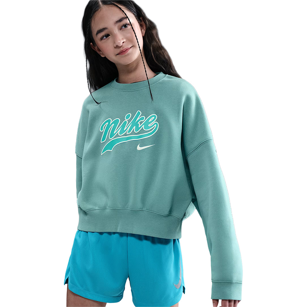 Das Nike G NSW Trend FLC CRP Crew ist ein stylisches, bequemes Sweatshirt für Mädchen, das sich perfekt für Sport, Freizeit oder entspannte Tage eignet. Hergestellt aus weichem Fleece-Material bietet es ein angenehmes Tragegefühl und hält an kühleren Tagen wohlig warm. Die Cropped-Passform (CRP) sorgt für einen modernen, lässigen Look, während der klassische Rundhalsausschnitt (Crew) das Design abrundet. Dezente Bündchen an Ärmeln und Saum sorgen für optimalen Sitz, und das kleine Nike-Logo auf der Brust setzt sportliche Akzente. Kombiniert mit Jogginghosen, Leggings oder Shorts entsteht ein unkomplizierter, trendiger Freizeitlook für junge Sportlerinnen.