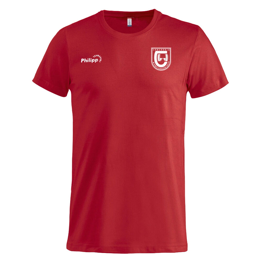 T-Shirt, körpernah geschnitten, Nackenband und Kragen sind mit Elasthan versetzt, verstärkte Schulternähte. Herren ist rund gestrickt und Damen hat Seitennähte. Waschbar bis 60° C.