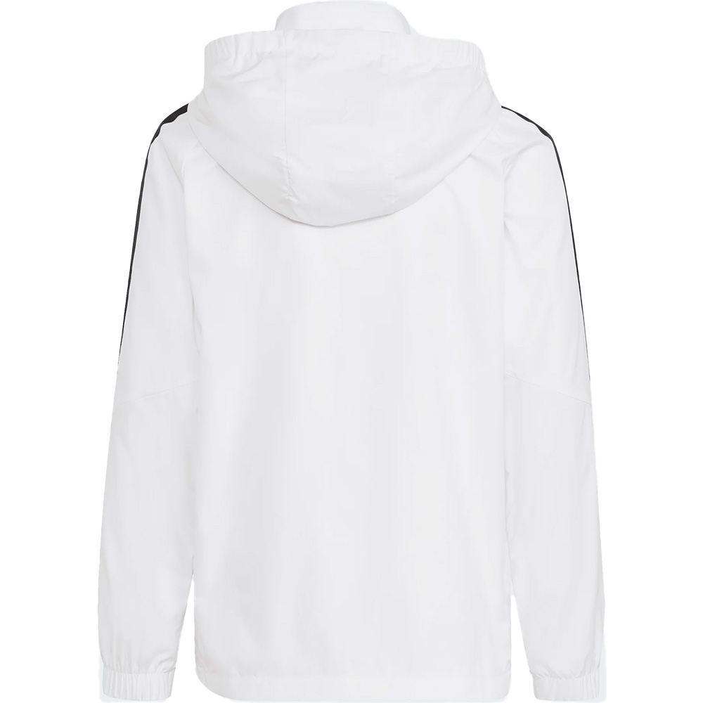Diese leichte, verstaubare Jacke, die Schauer abwehrt und den Wind fernhält, vereint Stil und Funktionalität. Das schlichte, sportliche Design spricht modebewusste Kinder an. Mit den ikonischen 3-Streifen an den Armen setzt das Modell auf und neben dem Spielfeld ein Zeichen.