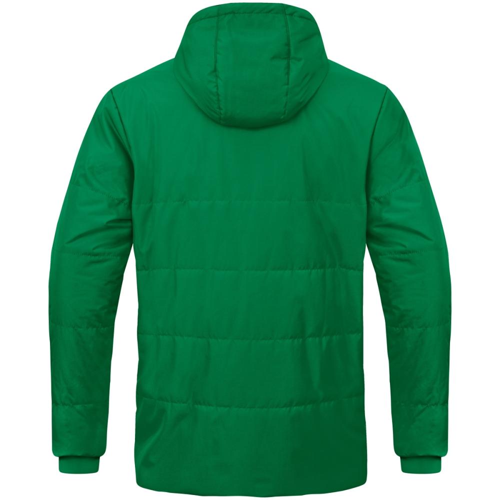 Wasserabweisendes Obermaterial, wärmeisolierende Wattierung und weiches Fleece an der Innenseite machen die JAKO Coachjacke Team zur optimalen Ausstattung bei kühleren Temperaturen. Bei widrigem Wetter kannst Du die im Kragen intergierte Kapuze tragen. Des Weiteren schützen integrierte Ripp-Bündchen in den Ärmeln, dem Kordelzug und den Stoppern sowie an der Kapuze vor dem Eindringen von Wind und Regen. So garantiert die Jacke optimalen Tragekonform.