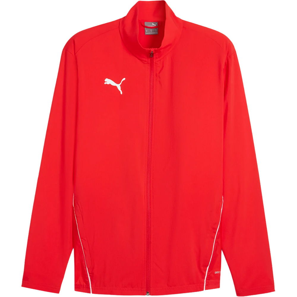 Die Jacke verfügt über einen durchgehenden Reißverschluss, einen Stehkragen und elastische Bündchen, die Wärme speichern und Komfort garantieren. Dezentes PUMA Branding und moderne Team-Design-Details runden das sportliche Erscheinungsbild ab und machen die Jacke perfekt für den Einsatz am Spielfeldrand oder in der Freizeit.