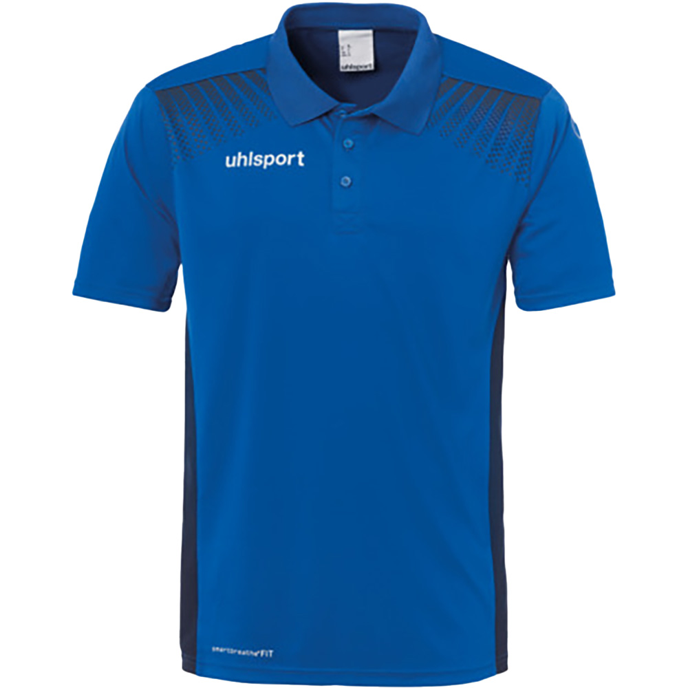 Das GOAL Polo Shirt vereint sportliches Design mit funktionalem Komfort. Gefertigt aus leichtem, atmungsaktivem Polyester sorgt es für ein angenehmes Tragegefühl – ideal für Training, Teamausstattung oder den Alltag. Der klassische Polokragen mit Knopfleiste trifft auf dynamische Kontrasteinsätze an den Seiten. Der gedruckte uhlsport-Schriftzug auf der Brust und Logos auf den Ärmeln runden das sportliche Gesamtbild stilvoll ab.