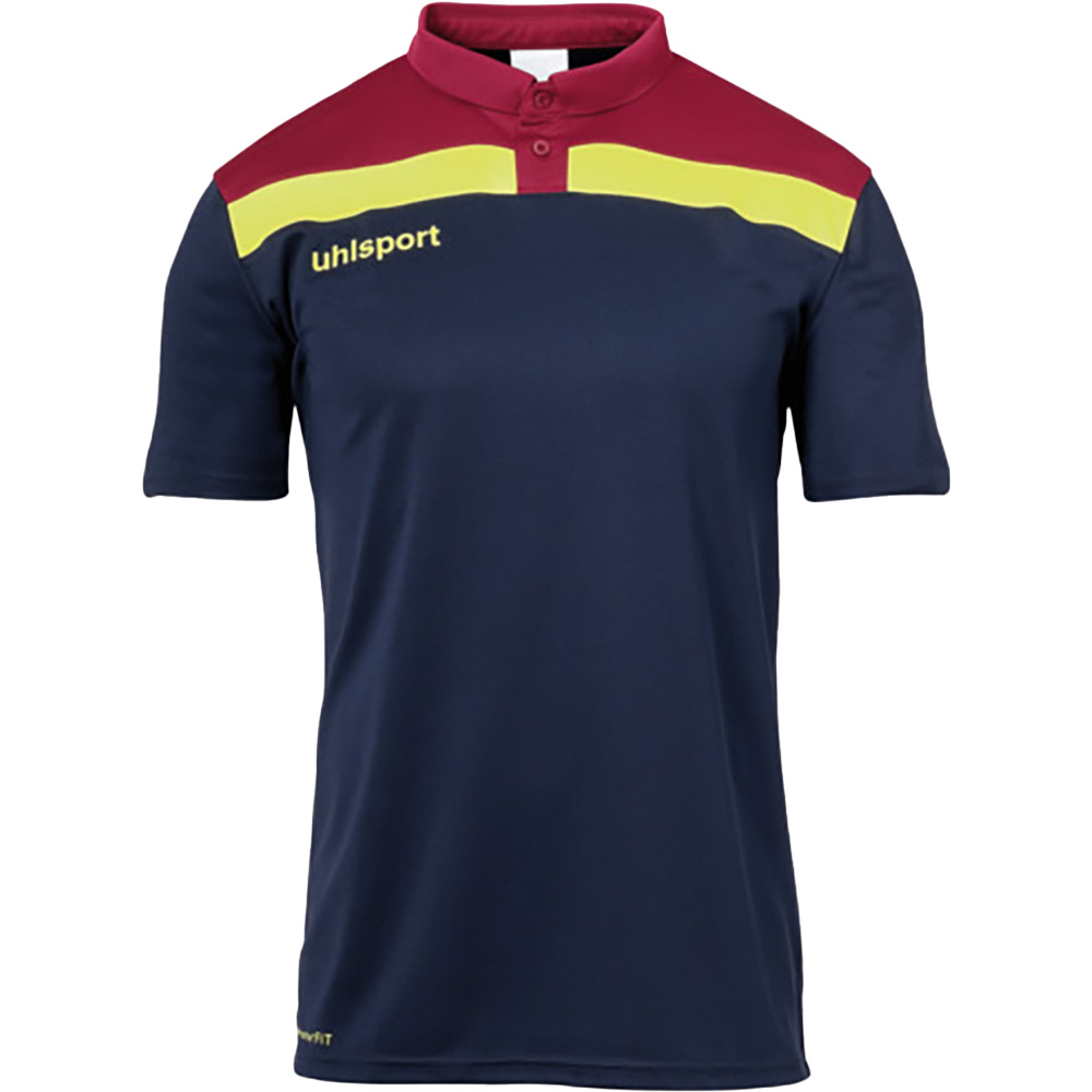 Sportlicher Look trifft auf funktionale Materialien: Das OFFENSE 23 Polo Shirt überzeugt mit schnittechnischem Design auf der Vorderseite und einem fixierten Polokragen für einen klassischen Auftritt. Der Materialmix aus Polyester und atmungsaktivem Mini-Mesh sorgt für angenehmen Tragekomfort – ideal für Training und Freizeit. Der gedruckte uhlsport-Schriftzug rundet das moderne Erscheinungsbild dezent ab.