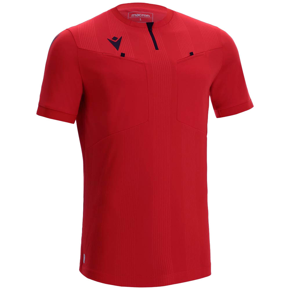 Schiedsrichtertrikot aus Eco-Softlock aus recyceltem 100 % PET-Polyester. Rundhalsausschnitt aus Strick und umgekehrter Viertelreißverschluss aus Nylon mit selbstsperrendem Schieber und Klemmschutz aus Stoff mit offenen Schnittkanten. Rückseite aus Eco-Micromesh für mehr Leichtigkeit und Atmungsaktivität. Zwei ergonomisch geformte Brusttaschen mit Klettverschluss, mit denen die Karten sicher aufbewahrt und schnell gezückt sind. Geprägte Textur mit Streifenmuster auf der Vorderseite speziell für UEFA-Schiedsrichter ´21.