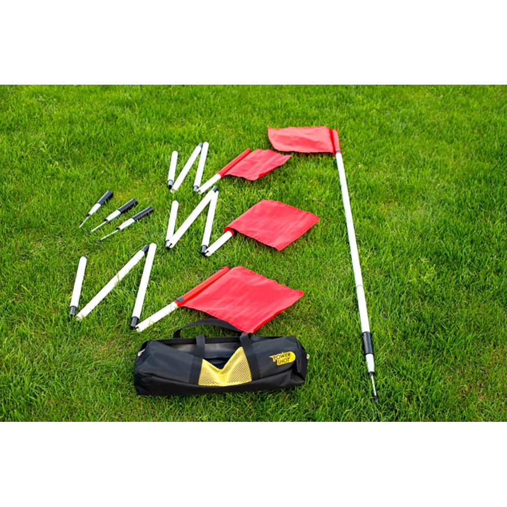Das POWERSHOT Eckfahnen-Set besteht aus vier faltbaren Fahnen mit Pfosten und ist die ideale Lösung für Fußballplätze. Dank der Faltkonstruktion lassen sich die Eckpfosten platzsparend transportieren und schnell aufbauen. Die Fahnen sind farbintensiv und wetterbeständig, wodurch sie auch bei intensiver Nutzung lange haltbar bleiben.