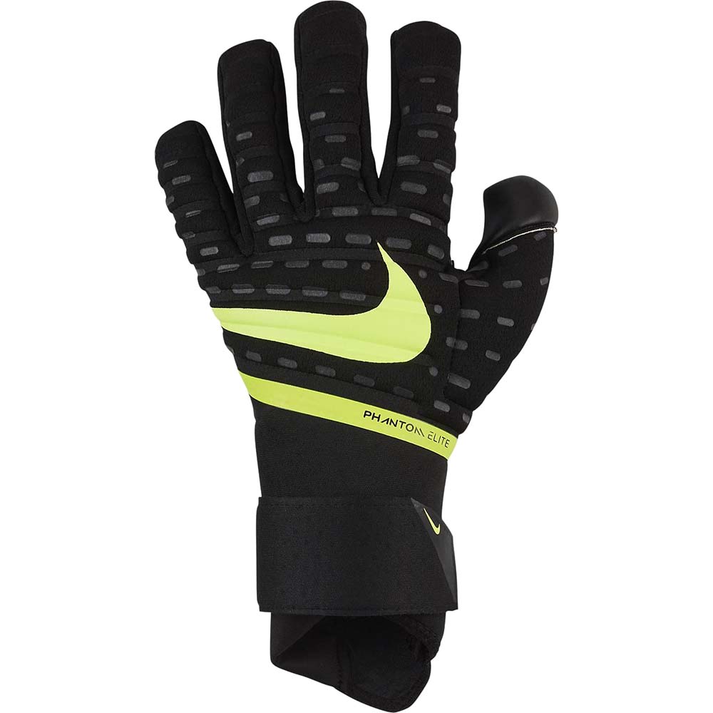 Die Phantom Elite Torwarthandschuhe bestehen aus strapazierfähigem Schaumstoff, der Schüsse blockiert. Flexibles Material sorgt für bewegungsfreundlichen Tragekomfort. ACC-Technologie (All Conditions Control) sorgt bei nassen und trockenen Bedingungen für beständigen Grip.