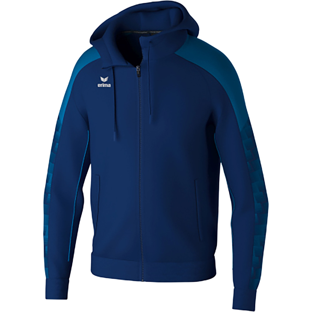 Die EVO STAR Trainingsjacke mit Kapuze bietet sportliche Funktionalität und modernen Komfort in einem. Das leichte, atmungsaktive Material sorgt für ein angenehmes Tragegefühl und maximale Bewegungsfreiheit – ob beim Training, Aufwärmen oder in der Freizeit. Die praktische Kapuze schützt zuverlässig vor Wind und Wetter, während der durchgehende Reißverschluss und seitliche Taschen Funktionalität und Komfort abrunden. Mit ihrem markanten EVO STAR Design vereint die Jacke sportliche Dynamik mit modernem Look und ist damit der perfekte Begleiter für alle, die Leistung und Stil gleichermaßen schätzen.