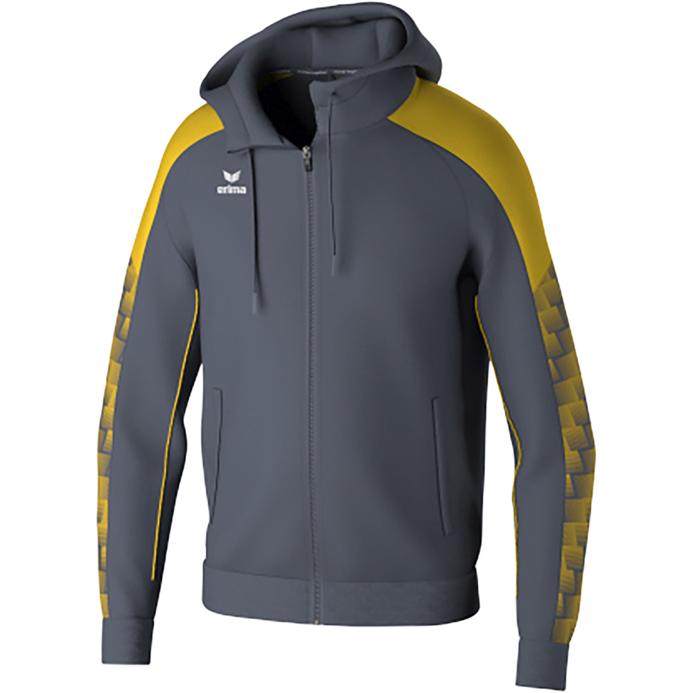 Die EVO STAR Trainingsjacke mit Kapuze bietet sportliche Funktionalität und modernen Komfort in einem. Das leichte, atmungsaktive Material sorgt für ein angenehmes Tragegefühl und maximale Bewegungsfreiheit – ob beim Training, Aufwärmen oder in der Freizeit. Die praktische Kapuze schützt zuverlässig vor Wind und Wetter, während der durchgehende Reißverschluss und seitliche Taschen Funktionalität und Komfort abrunden. Mit ihrem markanten EVO STAR Design vereint die Jacke sportliche Dynamik mit modernem Look und ist damit der perfekte Begleiter für alle, die Leistung und Stil gleichermaßen schätzen.