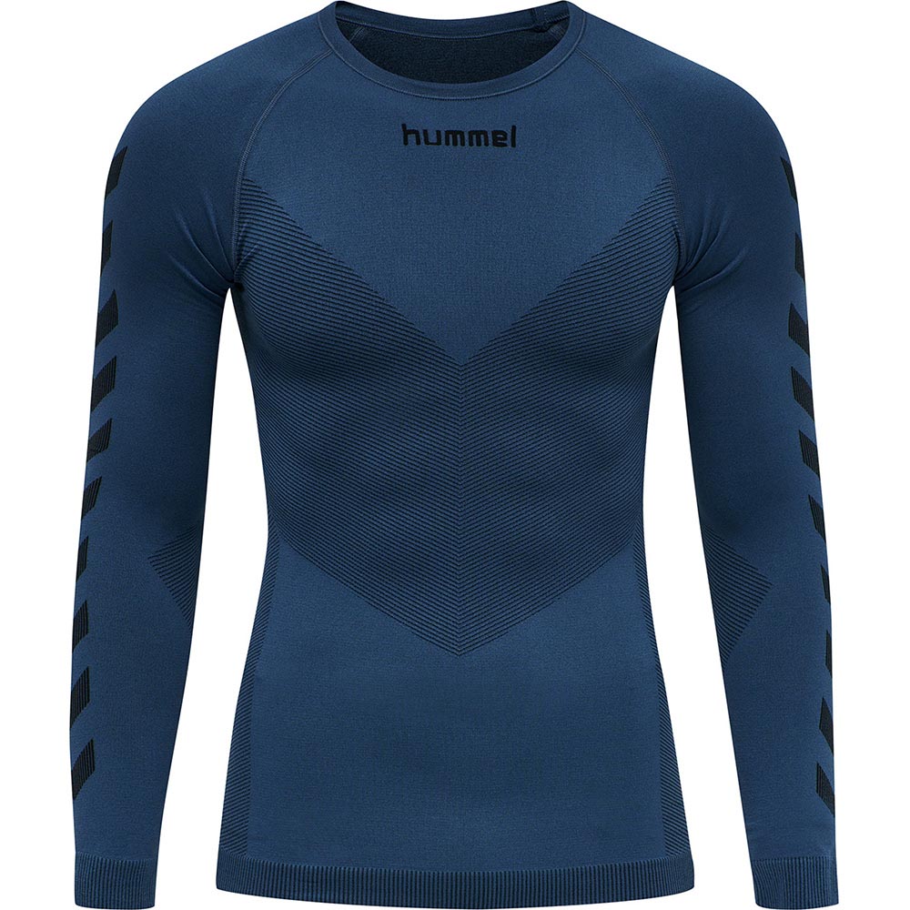 Das super-dehnbare, nahtlose Design des körpernahen HUMMEL FIRST SEAMLESS JERSEY L / S bietet ultimativen langärmeligen, stromlinienförmigen Tragekomfort und ein gestricktes hummel® Logo sowie Armchevrons.