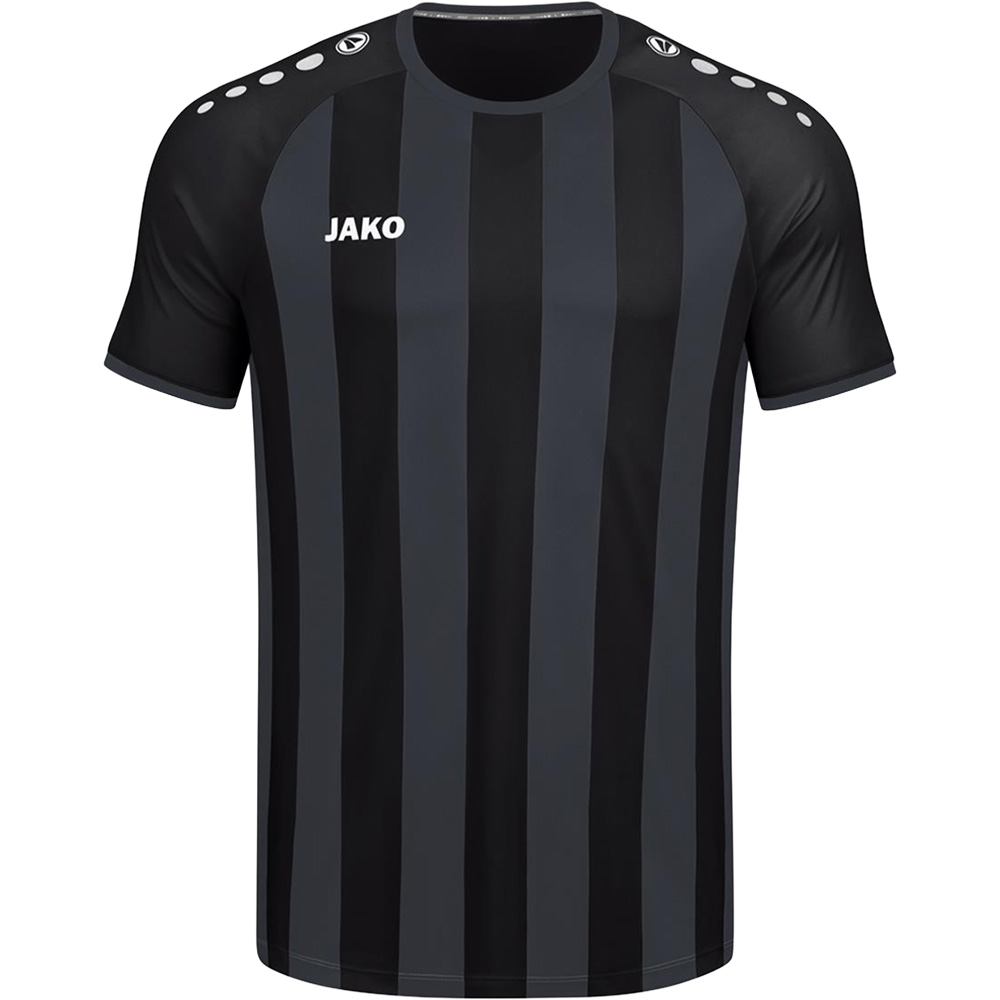 Das JAKO Trikot Inter Kurzarm besteht zu 100 % aus recyceltem Polyester. Das Interlock-Polyester ist strapazierfähiger und elastischer als vergleichbare Stoffe wie etwa Single Jersey. Der Rücken aus Micro-Mesh macht das Streifen-Trikot besonders atmungsaktiv.