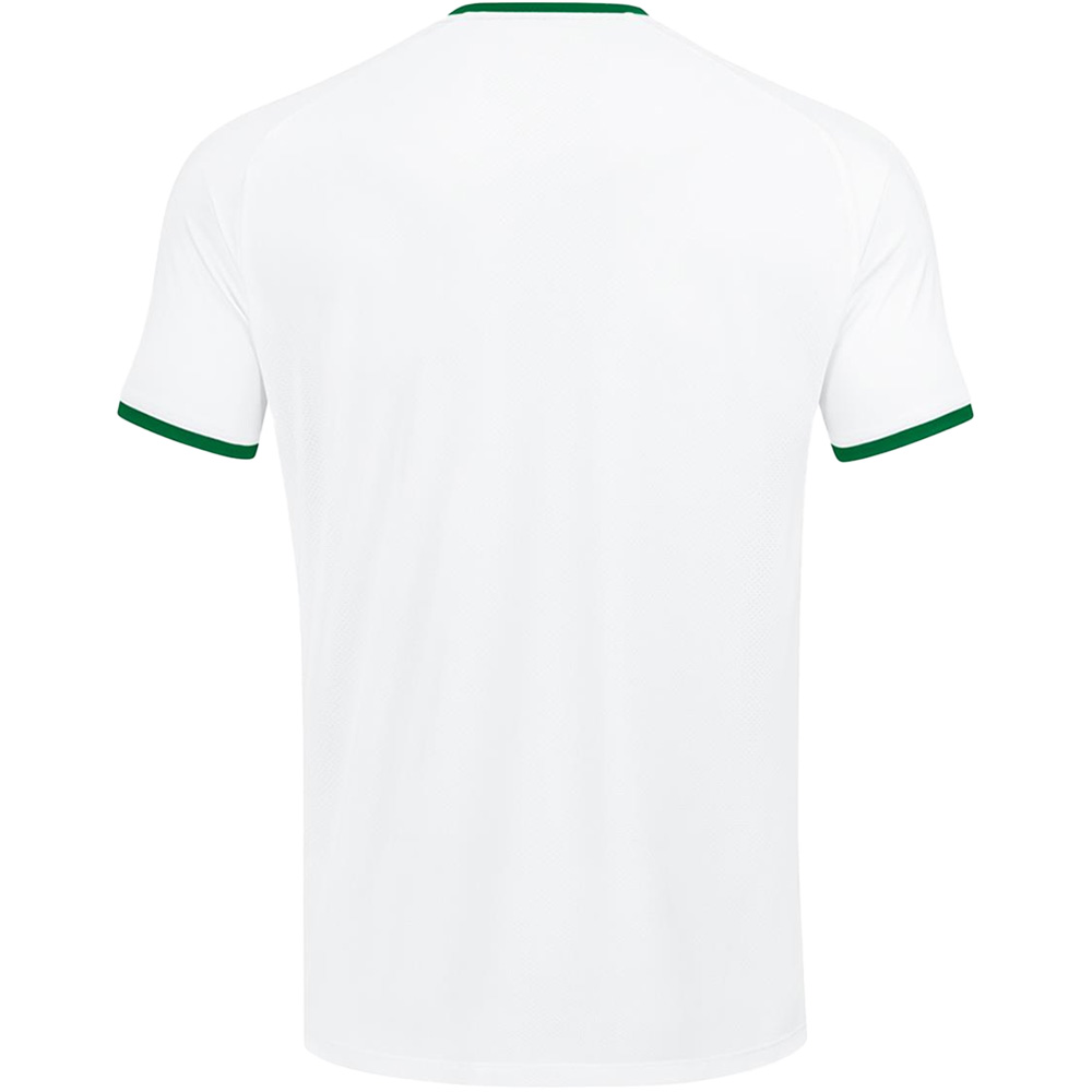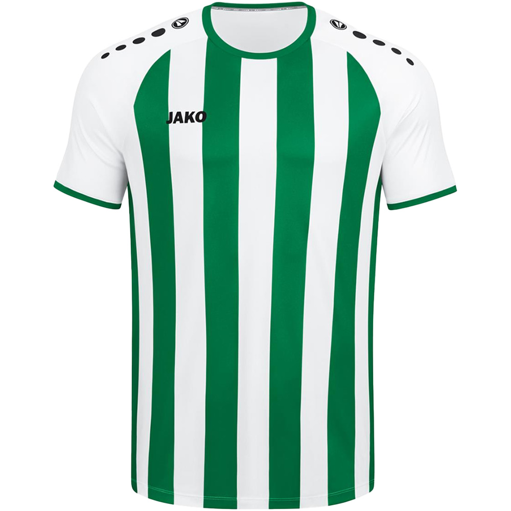 Das JAKO Trikot Inter Kurzarm besteht zu 100 % aus recyceltem Polyester. Das Interlock-Polyester ist strapazierfähiger und elastischer als vergleichbare Stoffe wie etwa Single Jersey. Der Rücken aus Micro-Mesh macht das Streifen-Trikot besonders atmungsaktiv.
