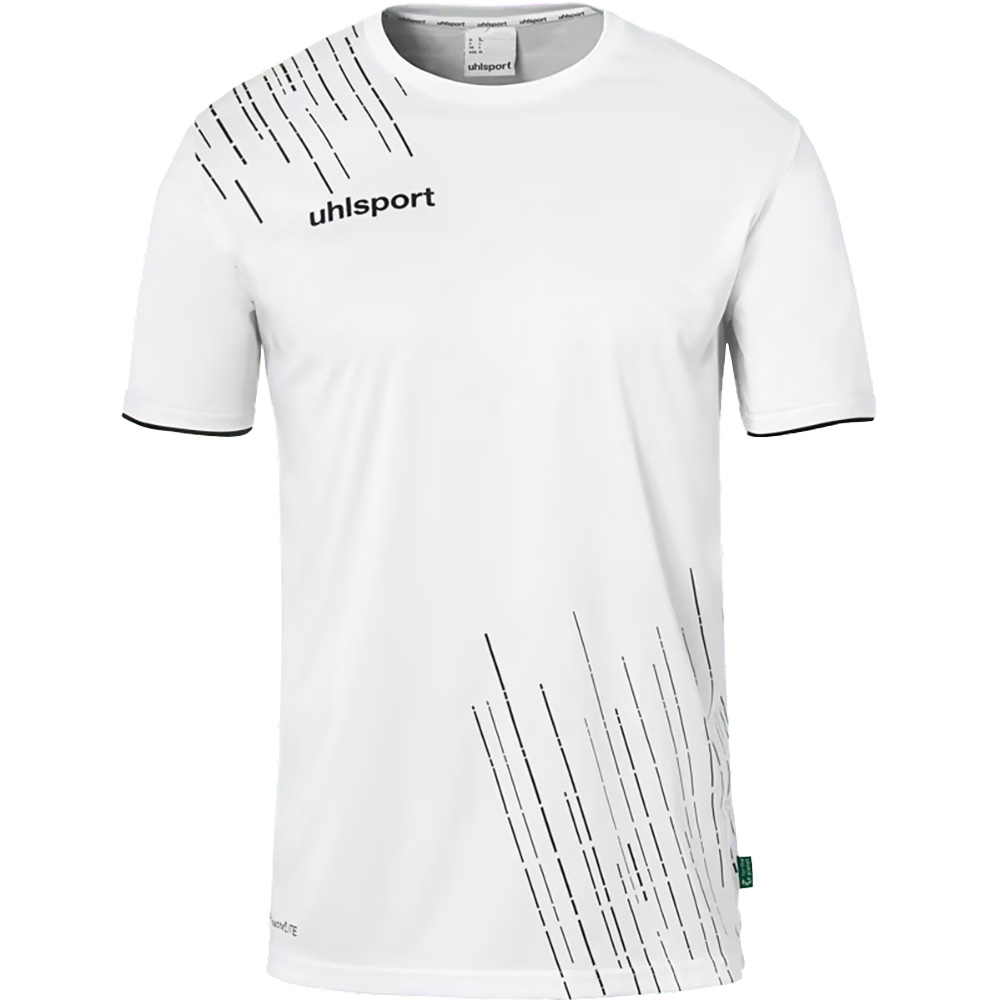 Dieses Set, bestehend aus Trikot und Shorts, überzeugt mit einem modernen Design und funktionalen Details. Das Trikot verfügt über einen Rundhalsausschnitt, einen uhlsport-Druck auf der Vorderseite sowie Logodrucke auf beiden Ärmeln. Ein markantes SCORE-Druckdesign an der Taille und ein Einsatz auf der Rückseite sorgen für optische Akzente. Die Rückseite besteht aus einem speziellen Mesh-Material für optimale Belüftung. Die Shorts sind ohne Innenslip gearbeitet, mit uhlsport-Druck und einem verstellbaren, elastischen Taillenbund mit Kordel ausgestattet. Das gesamte Set wird aus recyceltem Polyester gefertigt und trägt das Label „FOR THE PLANET“.