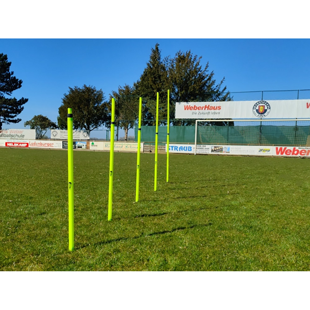 Dieses 5-teilige Set bietet höhenverstellbare Slalomstangen, die sich ideal für Koordinations-, Geschicklichkeits- und Agility-Training eignen. Die Stangen sind aus robustem Kunststoff gefertigt und lassen sich individuell an unterschiedliche Trainingsanforderungen anpassen. Dank der mitgelieferten Erdspieße sind sie einfach im Boden zu fixieren und eignen sich sowohl für den Outdoor- als auch Indoor-Einsatz.