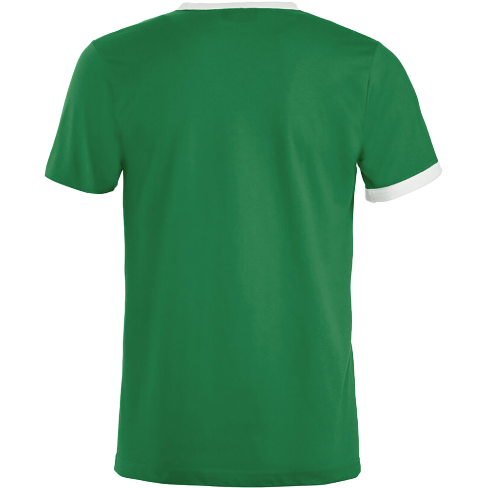 Unisex T-Shirt aus Single-Jersey, Kontrastfarbe an den Abschlüssen des Kragens und der Ärmelbündchen, elastischer Halsausschnitt durch Elastan. Waschbar bis 60°C.
